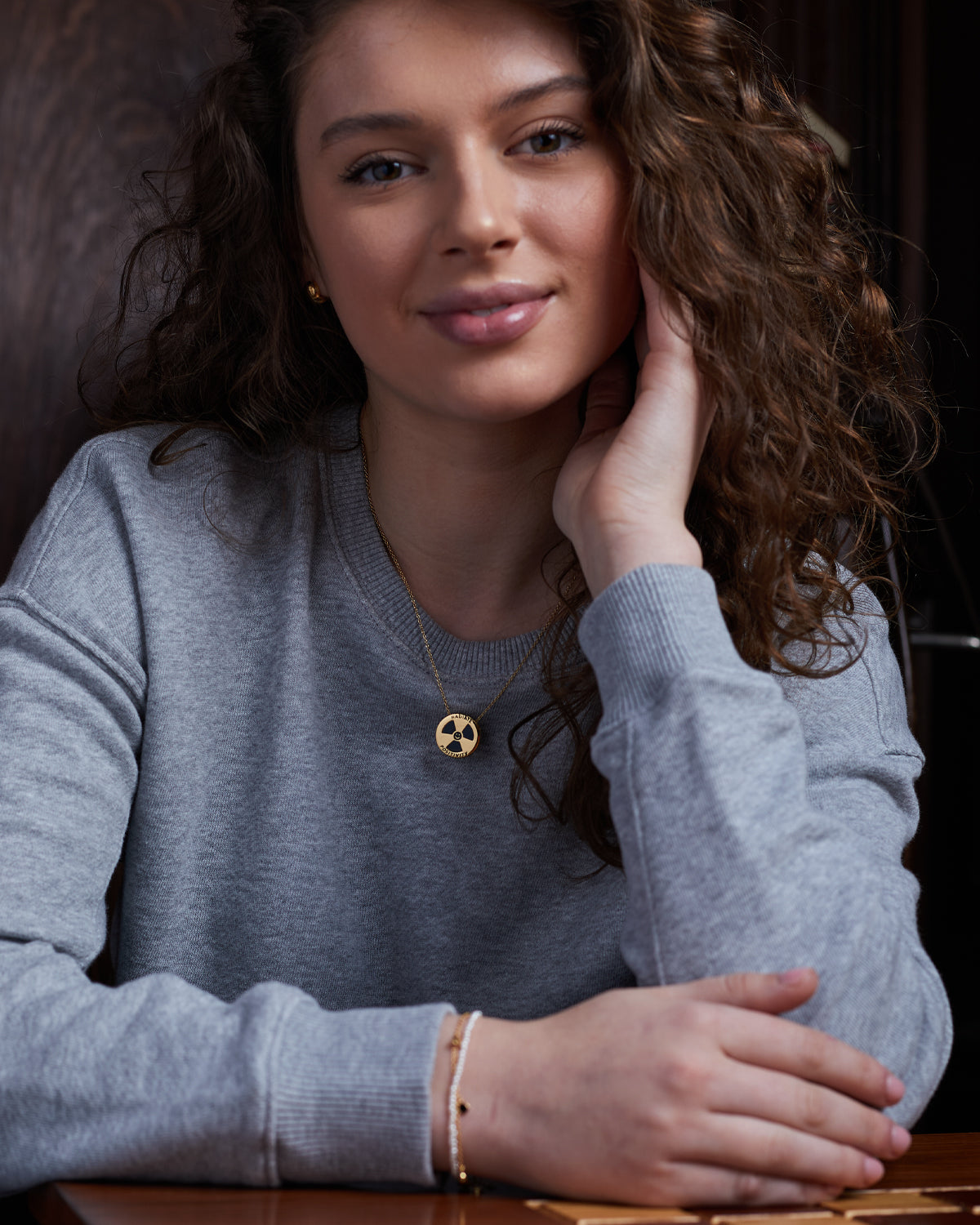You can instantly elevate this look by stacking some simple jewelry, like a pendant on a chain with a pearl seed bead necklace. Who knew a plain old sweatshirt could look so good?