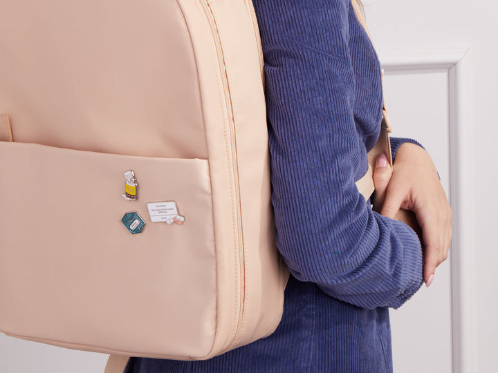 Don't limit pins to your clothing — extend your style to your accessories, starting with your backpack. Pinning a small, eye-catching lapel pin to your backpack can turn it into a unique fashion statement. Mix and match pins to create a personalized collection that tells your story, or choose a single standout pin for a minimalist yet stylish look.